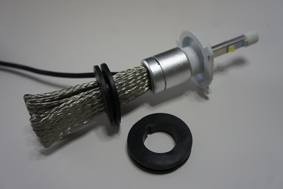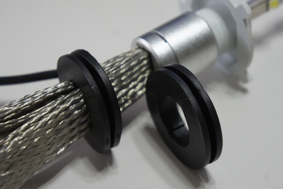 | 請看照片上有金屬散熱带穿過的黑色環狀PVC雙片墊封圈; 產品內有附2個中間具I.D. 20mm開孔(讓散熱帶拉露出在燈罩外), 外徑O.D. 40mm 呈2片式中央i.d. 25mm有肉身可正面和背面卡夾於Dia.28mm洗孔上,完成無空隙,防水及灰塵. |